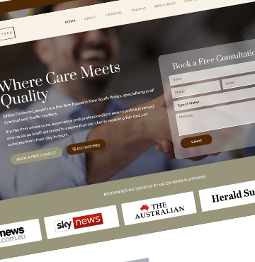 Whether you’re a boutique law firm, a specialist barrister, or a national legal practice, we design high-performing, SEO-optimised websites that build trust, attract new clients, and comply with all Australian legal marketing standards. Our experience working with lawyers across Sydney, Melbourne, Brisbane, and beyond ensures your website not only looks professional but ranks competitively in search results for your specific area of law.